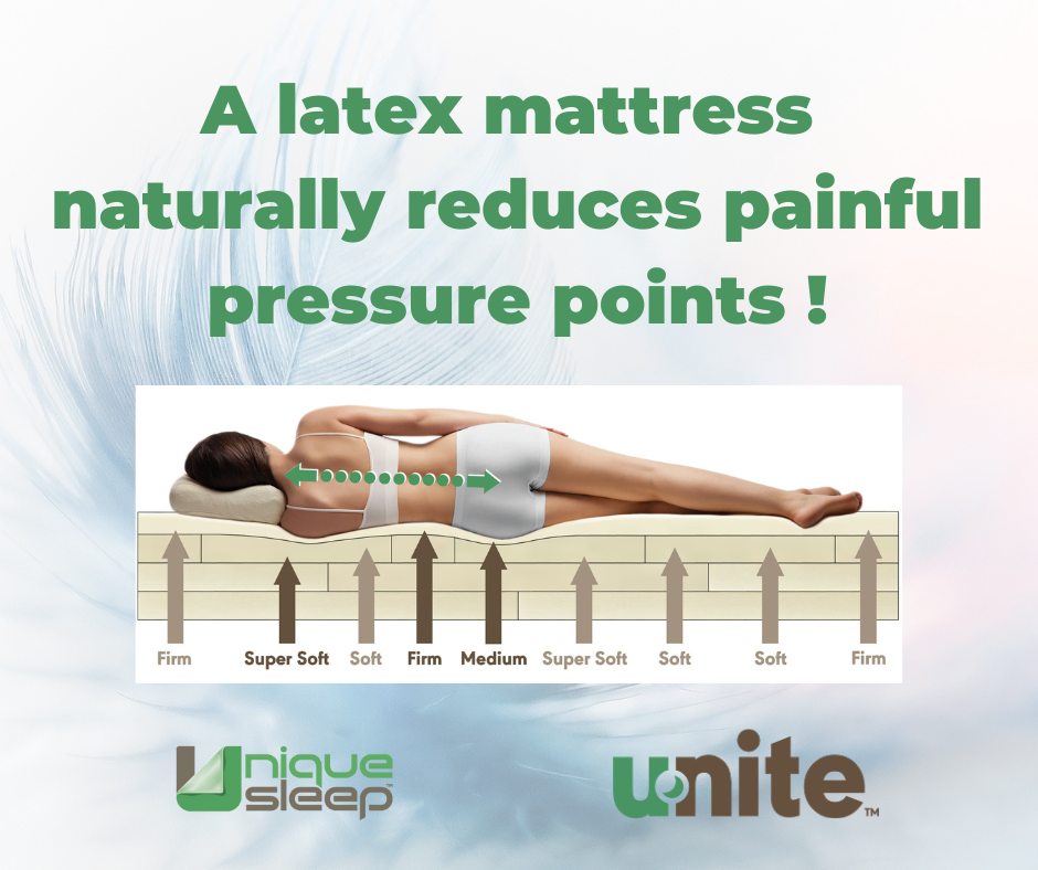 A latex mattress naturally reduces painful pressure points that cause you to toss and turn by gently absorbing your weight and wrapping itself around your body creating buoyant, feather-like pressure relief.